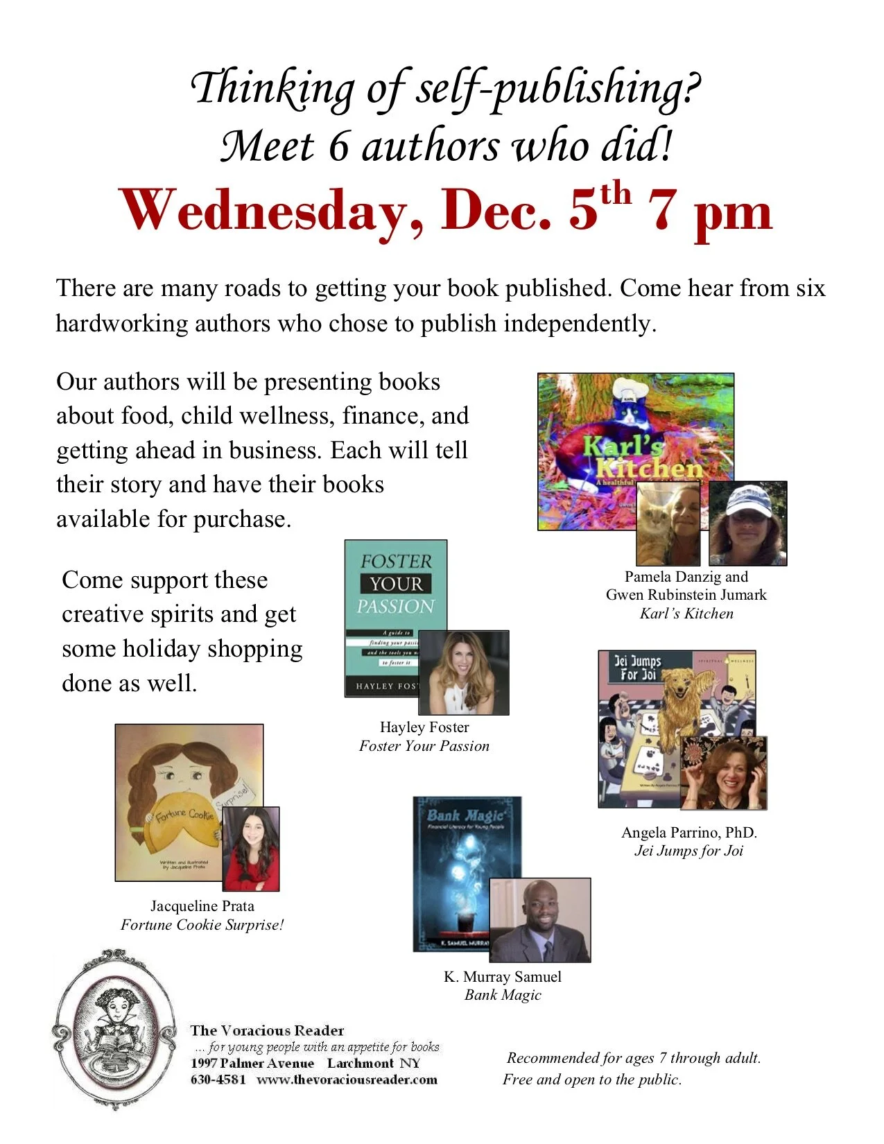 On November 10th, Jackie enjoyed spending the afternoon at Rye Ridge Shopping Center signing her book Fortune Cookie Surprise! Extra special thanks to Win Ridge Realty for hosting and coordinating. A special thank you to Dusty Rose women’s fashion clothing store, Learning Express Toys, and Totally Hott Salon. Excited to now have Learning Express Toys carry her book in their store! Thank you to Portal Magazine for stopping by and featuring an article in their Winter Issue. Jackie sold over 15 copies of Fortune Cookie Surprise, despite the brisk temperature including first snowflakes of the season!